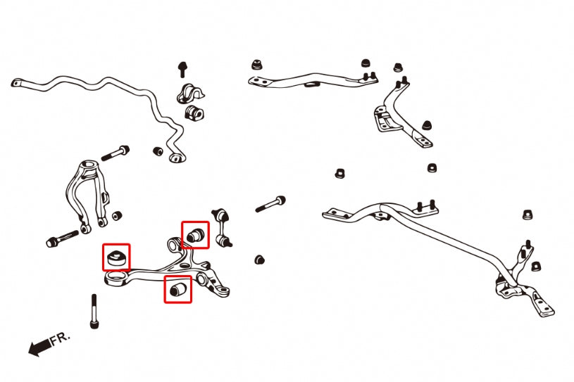 Hardened rubber bushings are made with a high strength and anti-crack rubber material, providing solid steering response and suspension feel with reduced deflection under extreme cornering loads.