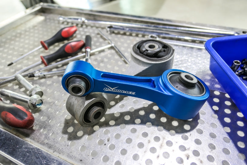 Hardrace engine mounts with hardened rubber bushings significantly reduce engine movement, improving traction and minimizing drivetrain shock.