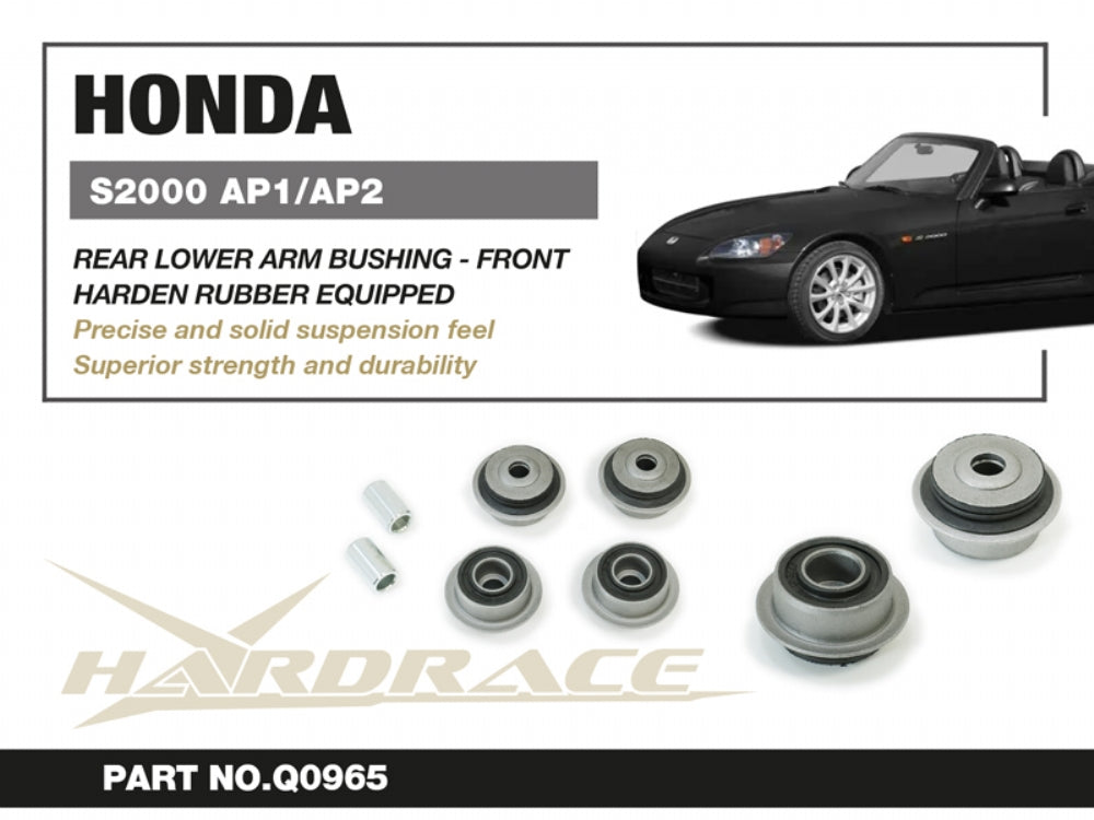 Hardened rubber bushings are made with a high strength and anti-crack rubber material, providing solid steering response and suspension feel with reduced deflection under extreme cornering loads.